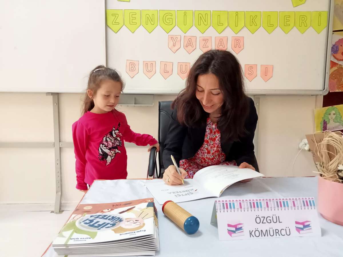 Dilimizin Zenginlikleri Yazar Buluşmamız kapsamında Sayın Özgül KÖMÜRCÜokulumuzda imza günü düzenlemiştir.